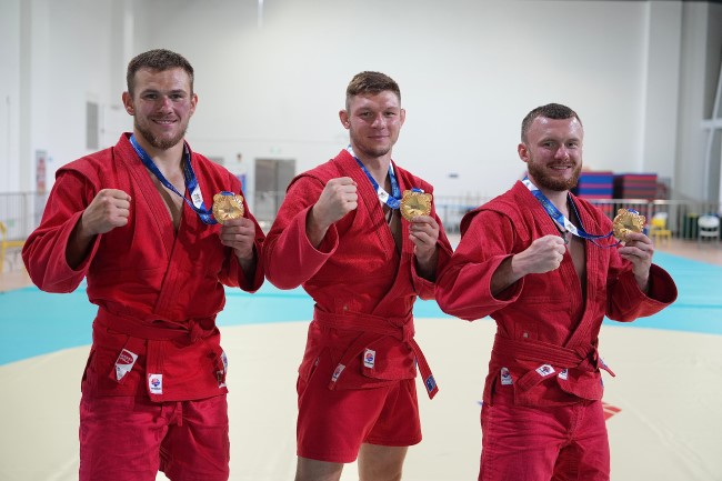 13 серпня на Всесвітніх іграх у китайському Ченду розіграли 6 комплектів нагород з бойового самбо. Золоті нагороди здобули Андрій Кучеренко (до 71 кг), Владислав Руднєв (до 79 кг) і Петро Давиденко (до 88 кг).