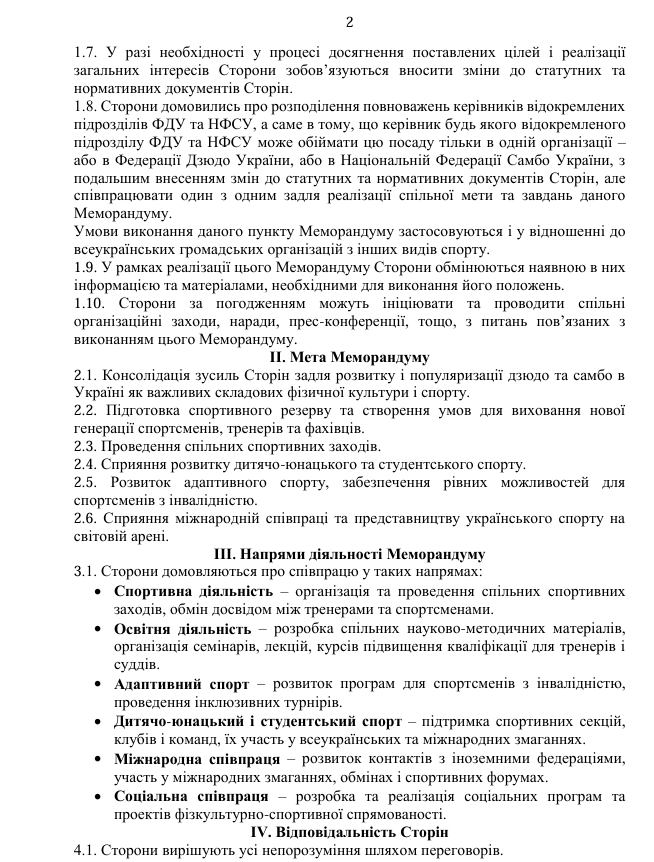 Cторони також підписали додаткову угоду — «Положення про формування складу національних збірних команд України з видів спорту дзюдо та самбо».