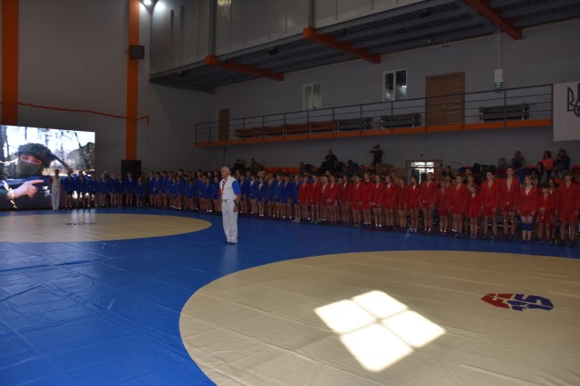 Спортивний комплекс Міжрегіональної академії управління персоналом з самого ранку суботи жив самбістським життям. Уже з восьмої години спортсмени почали готуватися до змагань, проводячи розминку на двох борцівських килимах. Але рівно о дев’ятій всі завмерли під час загальнонаціональної хвилини мовчання для вшанування пам’яті захисників і захисниць України, мирних жителів, життя яких забрала ця війна.