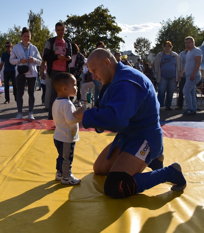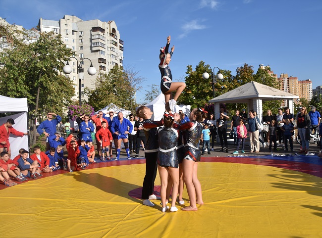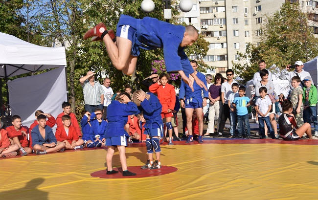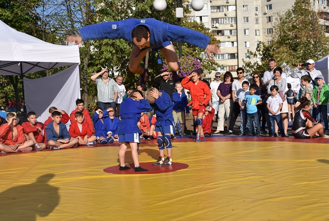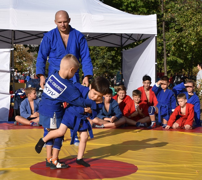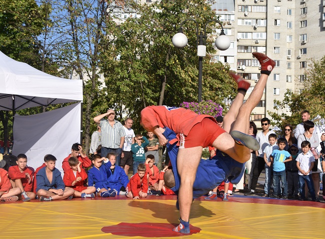 У суботу в різних куточках України самбісти святкували День фізичної культури і спорту, як кажуть, "у полі" - тобто демонстрували красу нашого виду єдиноборств. У Києві показові виступи й майстер-класи пройшли у парку "Позняки", якими керував тренер національної збірної з бойового розділу Сергій Грабовський. Вихованці спортивного клубу "Оберіг" підготували цікаву програму.