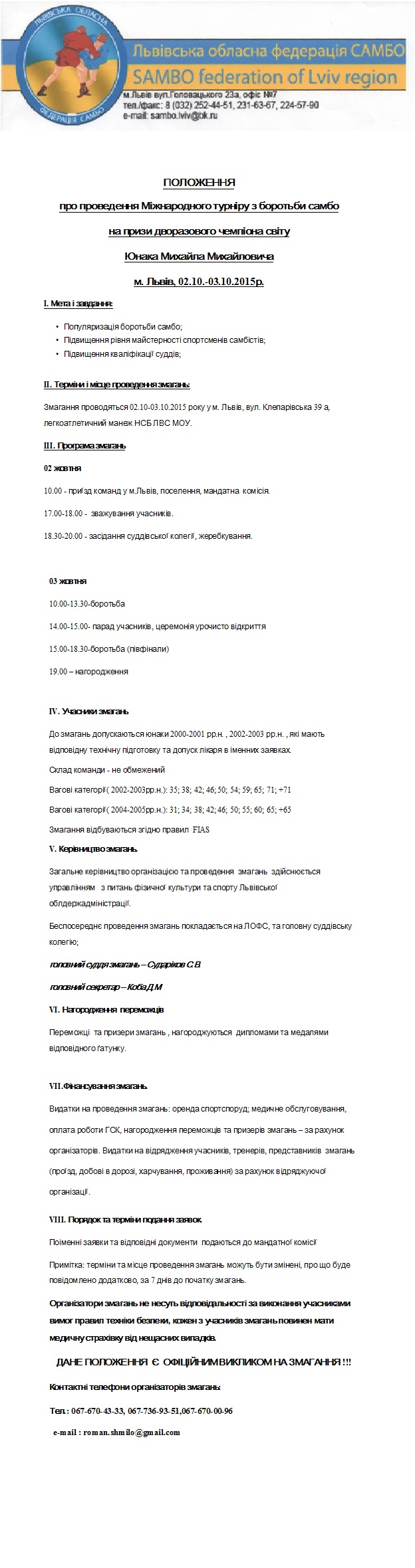 Всеукраїнський турнір з боротьби самбо на призи М.Юнака серед кадетів