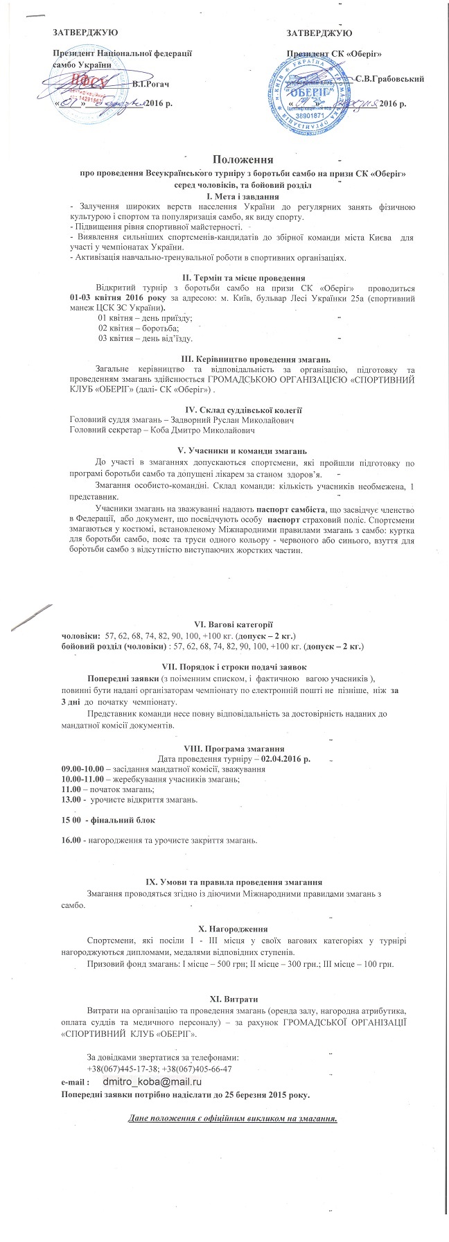 Відкритий Всеукраїнський турнір з бойового самбо «Оберіг»