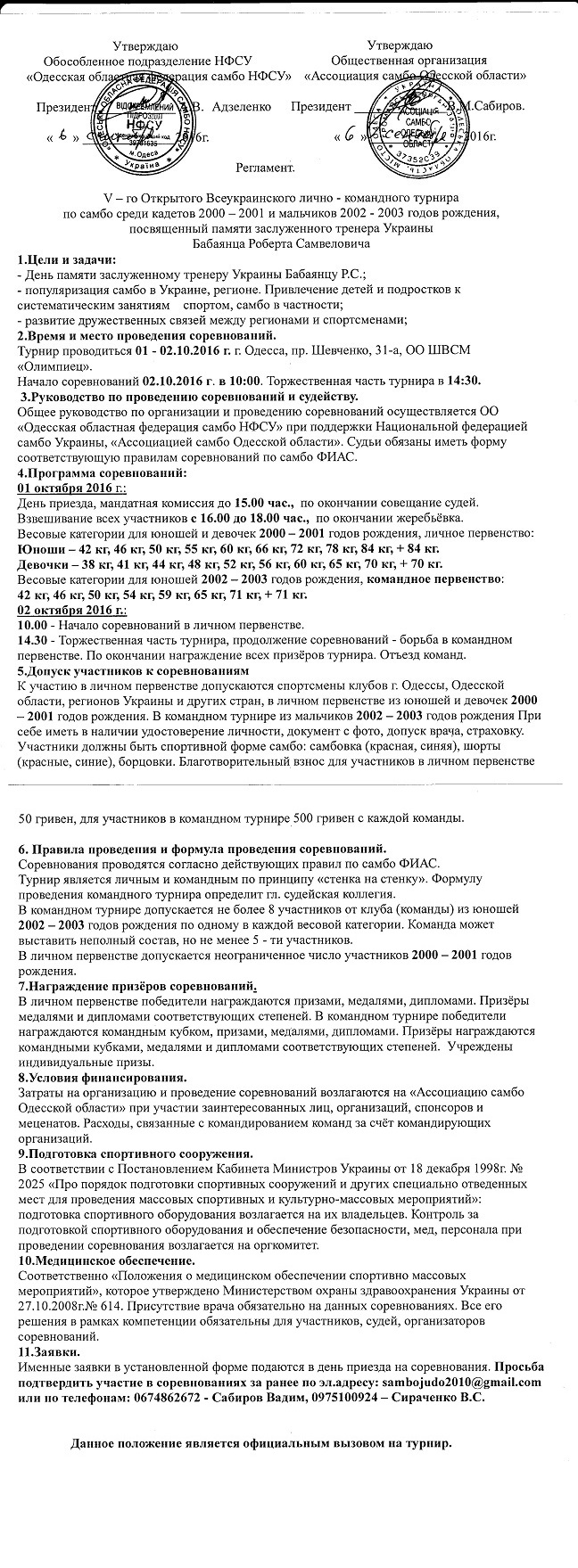 Відкритий Всеукраїнський турнір з боротьби самбо "Памяті ЗТУ Р.Бабаянца" серед юнаків 2000-2001рр.н, 2003-2004рр.н.