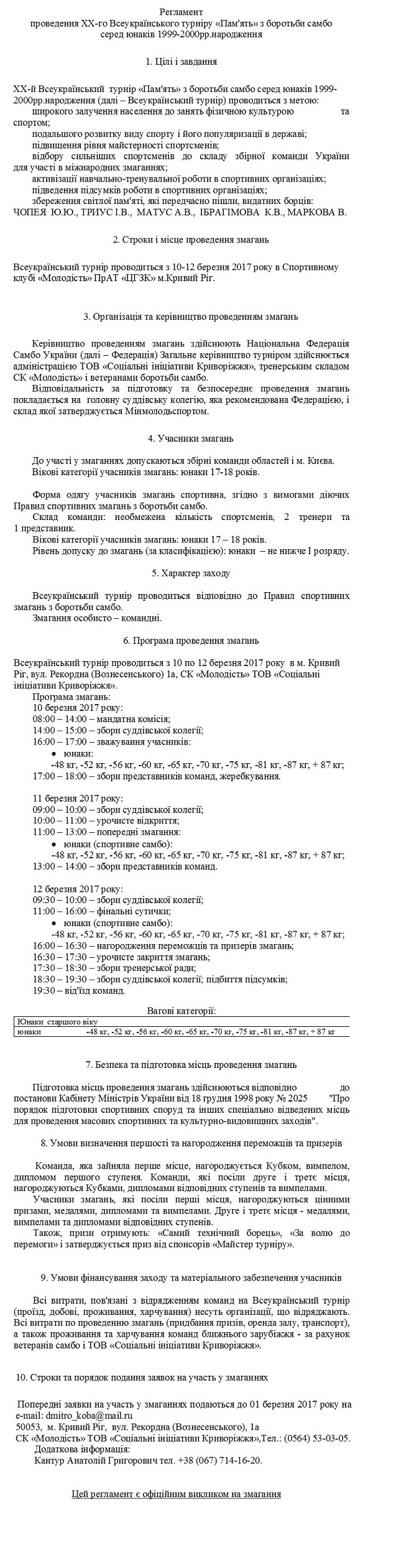 XХ Міжнародний турнір з боротьби самбо "Пам`ять" серед юнаків та дівчат