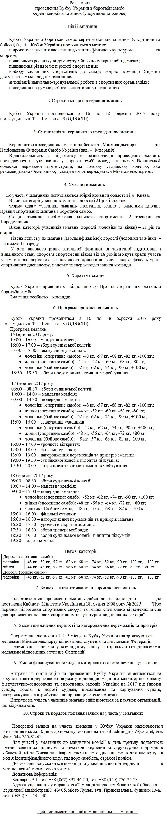 Кубок України серед чоловіків та жінок (спортивне та бойове)