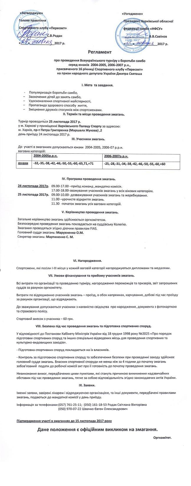 Всеукраїнський турнір "Пересвіт" на призи Д.Святоша серед юнаків та дівчат