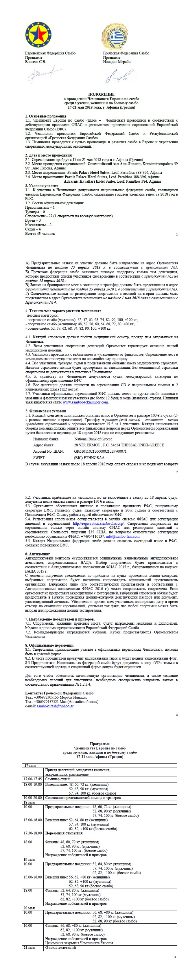 Чемпіонат Європи з САМБО серед чоловіків та жінок (спортивне та бойове)