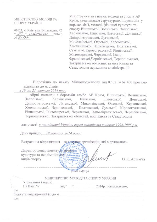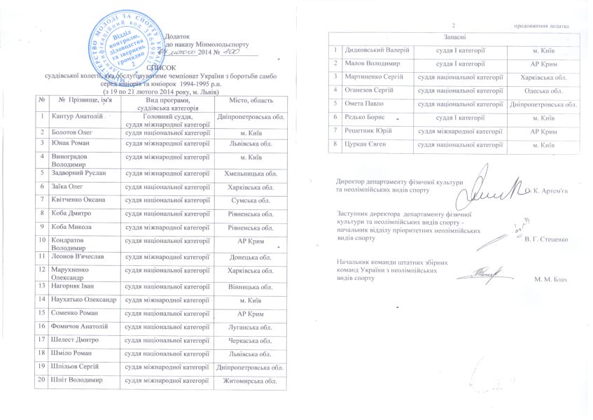 Чемпіонат України з боротьби самбо серед юніорів, юніорок та бойового розділу самбо 1994-95 рр.нар.