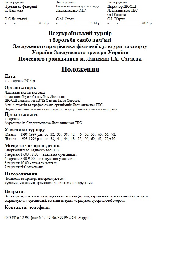 Всеукраїнські змагання. Відкритий Всеукраїнський турнір з боротьби самбо "Пам`яті ЗТУ І.Сагаєва" серед юнаків та дівчат
