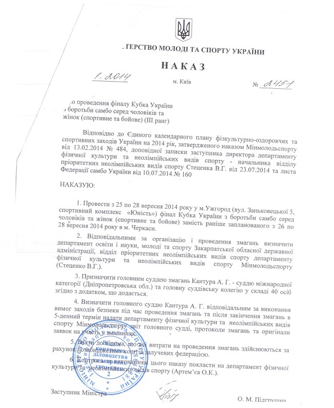 Кубок України - фінал з боротьби самбо серед чоловіків, жінок та бойового розділу самбо