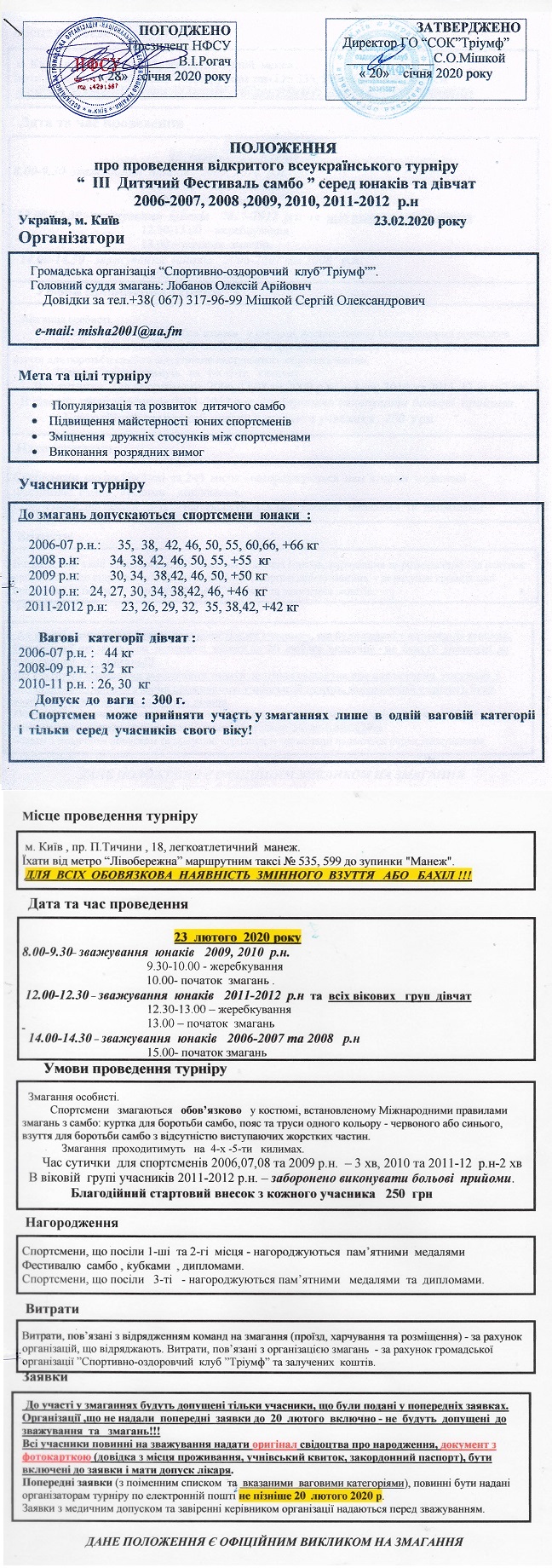 23 лютого в Києві відбудеться ІІІ Дитячій фестиваль самбо. За унікальні медалі боротимуться хлопці і дівчата від 7 до 14 років. Змагання прийме відреставрований легкоатлетичний манеж на Березняках.