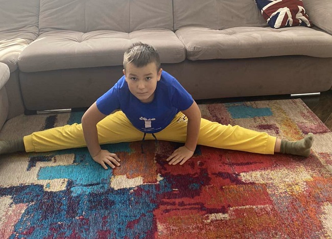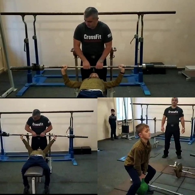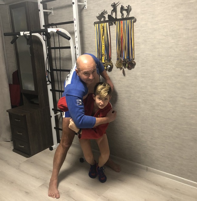 Влад Горнік з тато займається вправами загальної фізичної підготовки.