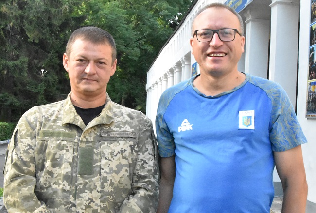 Президент НФСУ Вадим РОГАЧ і старший лейтенант Наталія РОЖНЯТІВСЬКА, начальниця прес-служби 30 бригади і автор сценарію фільму.