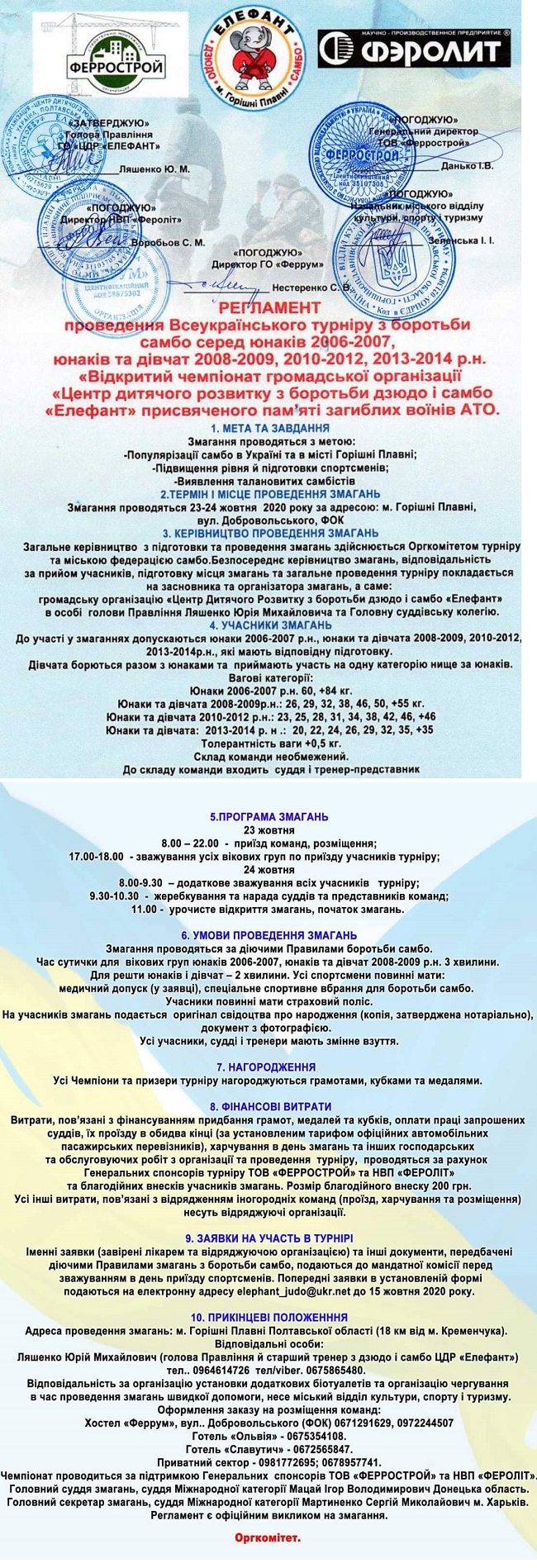 Центр дитячого розвитку "Елефант" запрошує на традиційний турнір серед юнаків і дівчат (від 6 до 14 років), присвячений загиблим воїнам АТО. Змагання приймають Горішні Плавні Полтавської області 23 і 24 жовтня.