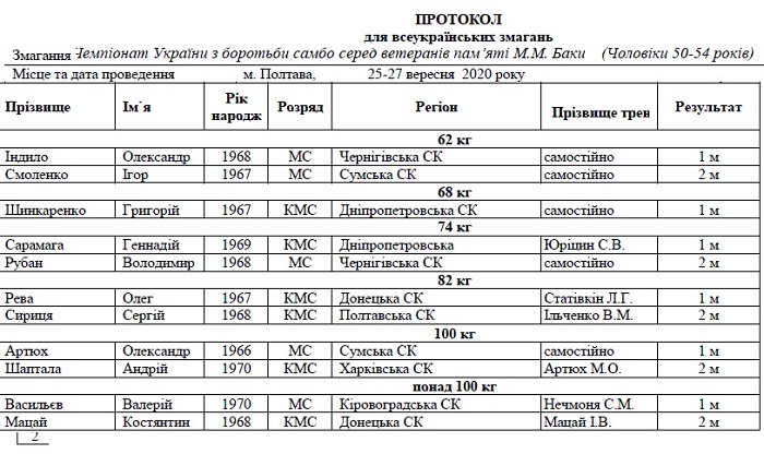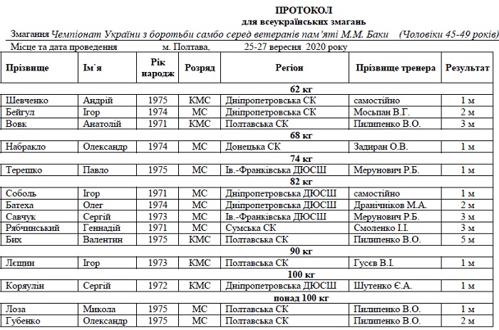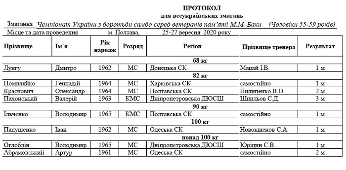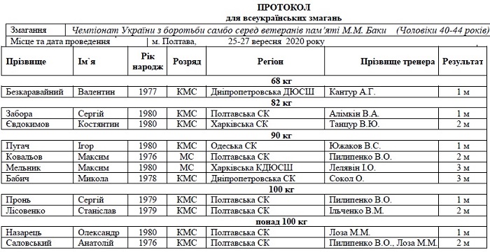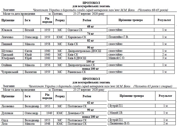 У Полтаві 26 вересня розіграли медалі чемпіонату України серед майстрів (ветеранів). Змагання традиційно були присвячені пам'яті Михайла Макаровича Баки і зібрали представників і представниць із 12 регіонів країни.