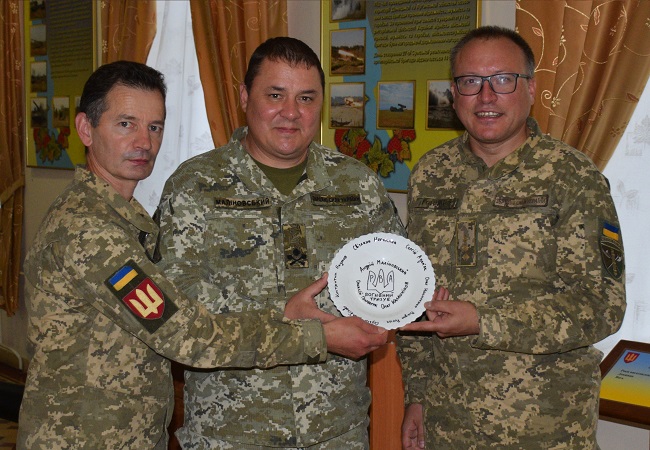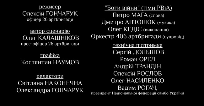 На нижньому фото: автор сценарію - Олег Калашніков (прес-офіцер 26 артбригади), автор ідеї - Андрій Маліновський (генерал-майор, начальник Управління РВіА), режисер фільму - Олексій Гончарук (офіцер 26 артбригади).