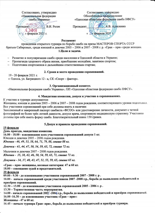 20 лютого в Одесі відбудеться традиційний Всеукраїнський турнір на призи майстрів спорту СРСР братів Сабірових. Змагання пройдуть серед хлопців і дівчат 2005 - 2008 років народження, плюс "Гран-прі" серед жінок.