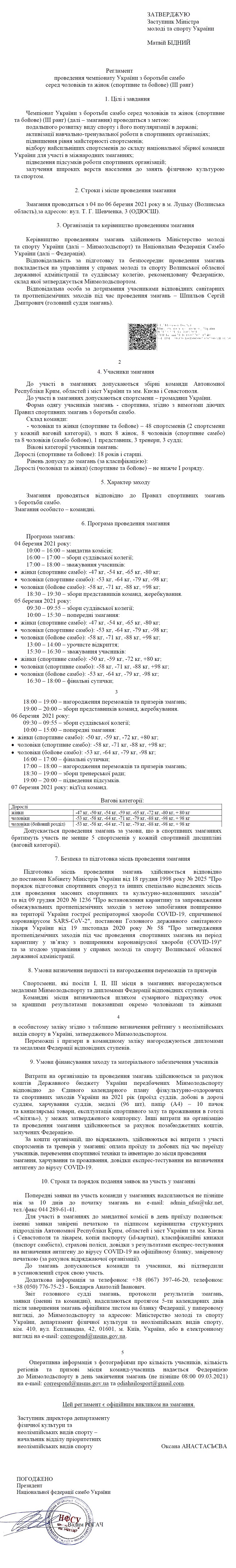 4 березня Луцьк оголосить збір учасників чемпіонату України серед чоловіків і жінок зі спортивного й бойового самбо - саме в цей день пройде мандатна комісія. А 5-го і 6-го - поєдинки. До вашої уваги - регламент змагань, які традиційно прийме світлий зал обласної ДЮСШ.