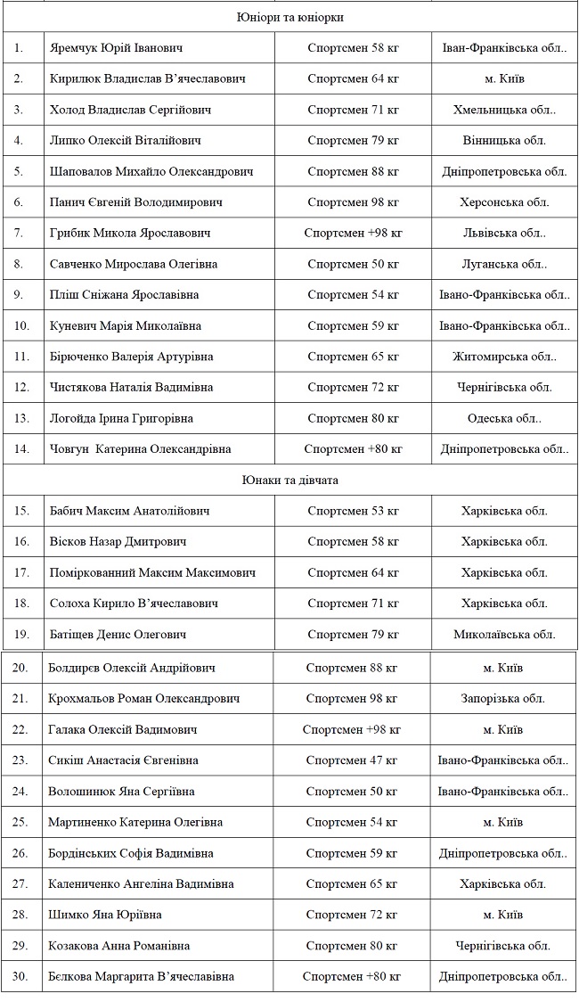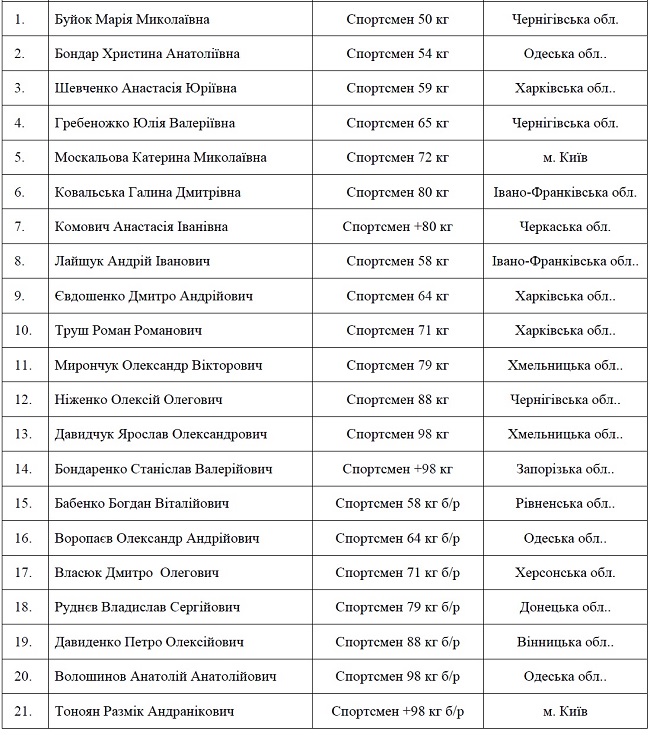 СПИСОК ЗБІРНОЇ УКРАЇНИ