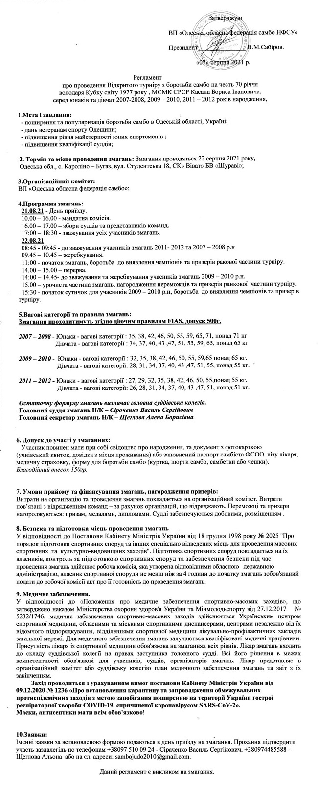 13 серпня Борис Касап відсіяткував 70-річний ювілей. А 22-го числа відбудеться турнір на честь володаря Кубку світу-1977, медаліста Всесоюзною спартакіади і чемпіонатів Радянського Союзу, майстра спорту міжнародного класу СРСР,