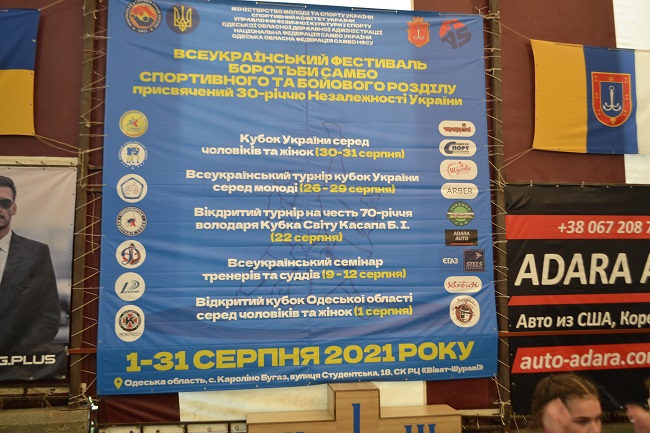 Триває Всеукраїнський фестиваль боротьби самбо, присвячений 30-річчю відновлення Незалежності України. Сьогодні в гостинному Кароліно-Бугазі (Одещина) стартував Кубок України серед молоді. Першими на килим вийшли наймолодші – юнаки та дівчата. Всього в цій віковій категорії беруть участь майже 200 учасників з 19 регіонів України. Завтра боротьбу розпочинають юніори й юніорки. Нагороди Кубку України серед дорослих будуть розіграні 30-31 серпня.