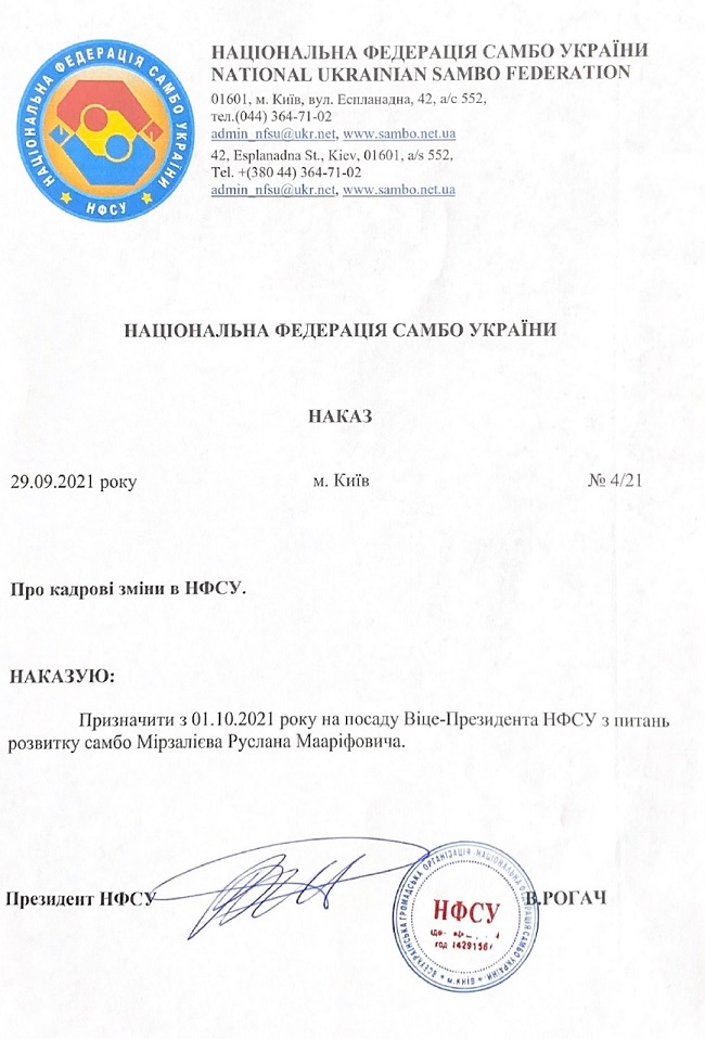 НФСУ прийняла до своїх лав ще одного однодумця, який готовий допомагати нашому виду спорту вийти на новий рівень. Віце-президентом з питань розвитку самбо став Руслан Мірзалієв.