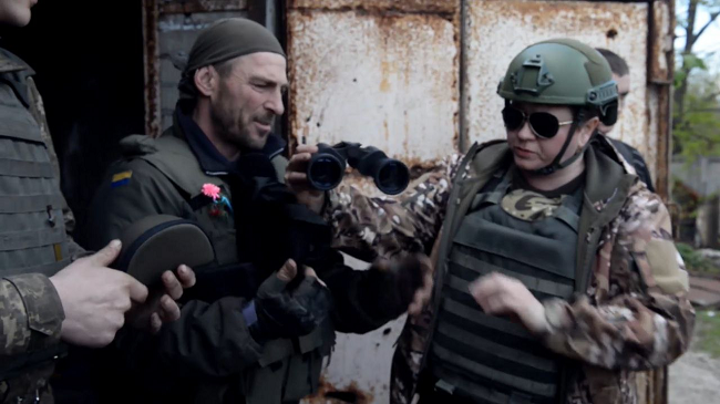 Кадр із фільму. Авдіївська промзона. Бійці 90 окремого аеромобільного батальйону імені Героя України Івана Зубкова отримують оптику від волонтерів.