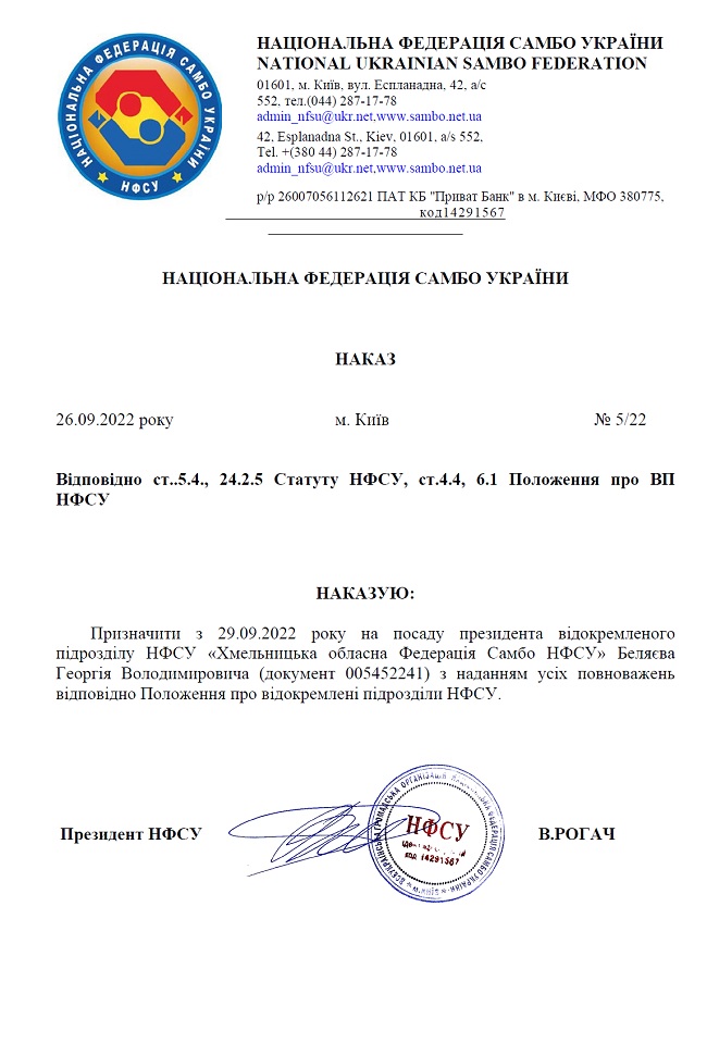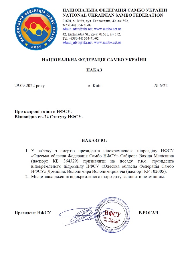 Відбулися зміни в керівництві двох регіональних осередків НФСУ. Керівником Хмельницької обласної федерації став Георгій Беляєв, а тимчасово виконуючим обов'язки очільника Одеської обласної федерації - Володимир Домніцак.