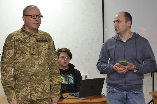 У програмі уроку учні 9-х, 10-х і 11-х класів побачили перебіг подій бою на станції Крути наприкінці січня 1918 року, а також відеонариси про авіацію і морський флот Української Народної Республіки. На десерт - два кліпи про нинішніх українських воїнів-танкістів (ліричний і гумористичний). Після цього було спілкування - про минуле й сучасне нашого війська.