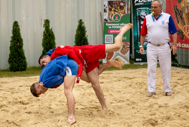 На фото вище, Прийма О. проводить результативний кидок Керимову
