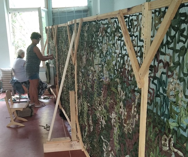 За ініціативи нашого колеги Олега Реви окремний розвідувальний батальйон, де служать і представники НФСУ, отримав такі потрібні засоби маскування - кікімору і маскувальну сітку. А виготовили їх "Киці - оболонські трудівниці" (https://www.facebook.com/groups/1751049365244082).