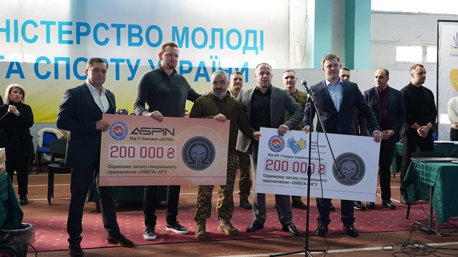 Учасники дякують за можливість змагатися і тренуватися захисникам України! На церемонії відкриття від партнерів Національної федерації самбо було передано два чеки по 200 тисяч гривень і тактичні окуляри окремому загону спеціального призначення "Омега" Національної Гвардії України.