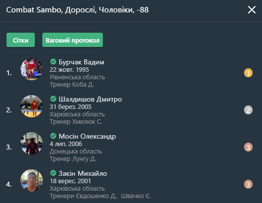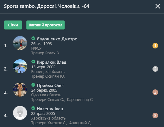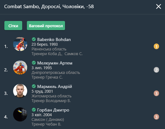 У суботу в Кривому Розі було розіграно першу половину медалей чемпіонату України серед чоловіків і жінок зі спортивного і бойового самбо. У змаганнях беруть участь дві сотні спортсменів, що представляють півтора десятки регіонів країни. Неділя визначить усіх медалістів і володарів кубків у командному заліку.