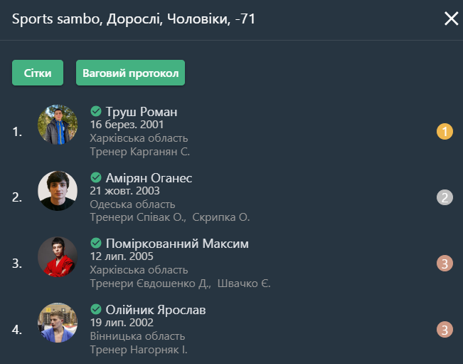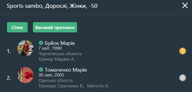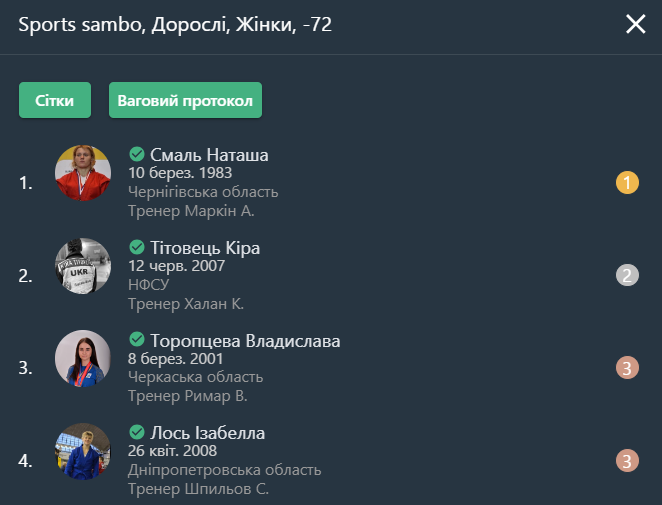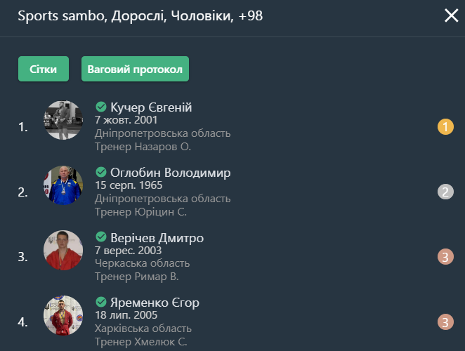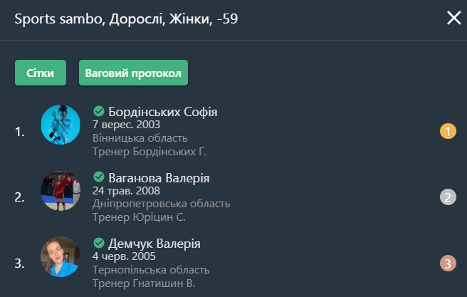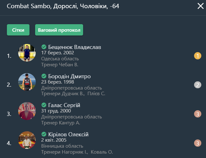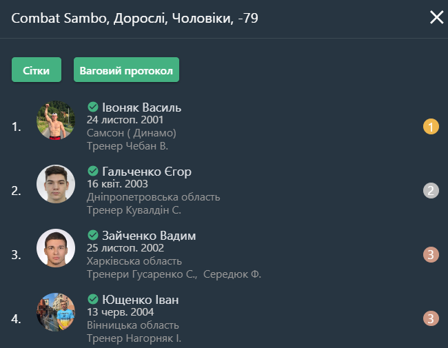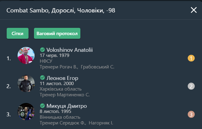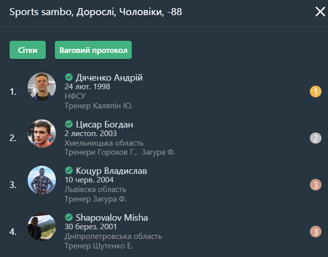 Список призерів першого дня змагань - http://sambo.net.ua/?code=13_2&id=1496