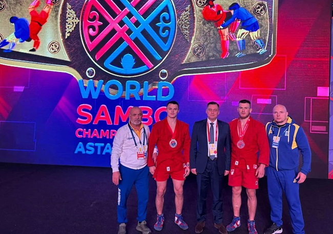 В Астані завершився перший змагальний день чемпіонату світу серед чоловіків і жінок зі спортивного і бойового самбо. Михайло Свідрак (до 79 кг, спортивне самбо) здобув "срібло", а Марія Буйок (до 50 кг, спортивне самбо) і Петро Давиденко (до 88 кг, бойове самбо) взяли "бронзу". Форум у столиці Казахстану зібрав майже півтисячі спортсменів із 80-ти країн. Змагання триватимуть у суботу й неділю.