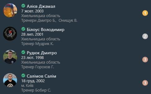 ЧОЛОВІКИ (спортивне самбо)