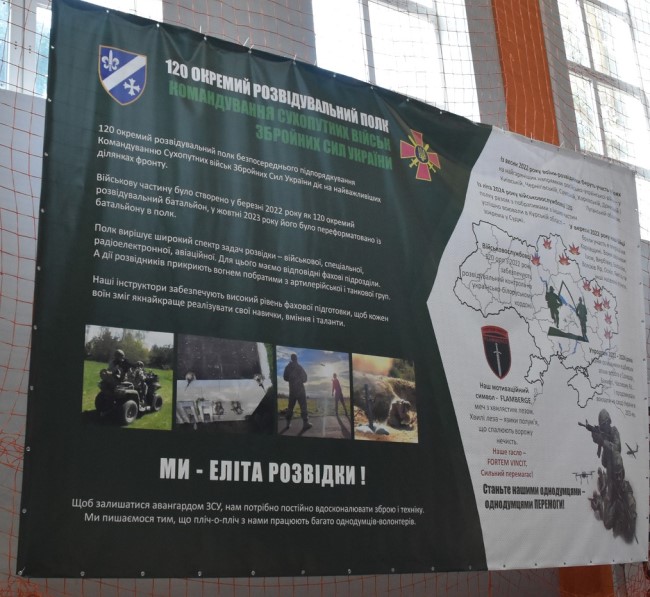 Потім до початку змагань на великому екрані було продемонстровано документальний фільм «Розвідка боєм», присвячений становленню навесні 2022 року і першим епізодам бойової біографії тоді ще 120 окремого розвідувального батальйону (посилання на стрічку – https://www.youtube.com/watch?v=WOJE8k_cY4c&t=1464s). Також про головні віхи історії полку учасники і глядачі могли прочитати на великому банері.