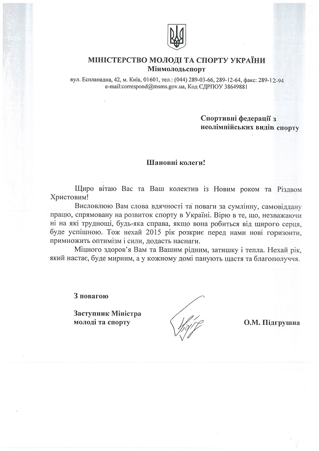 Побажання від Олени Підгрушної