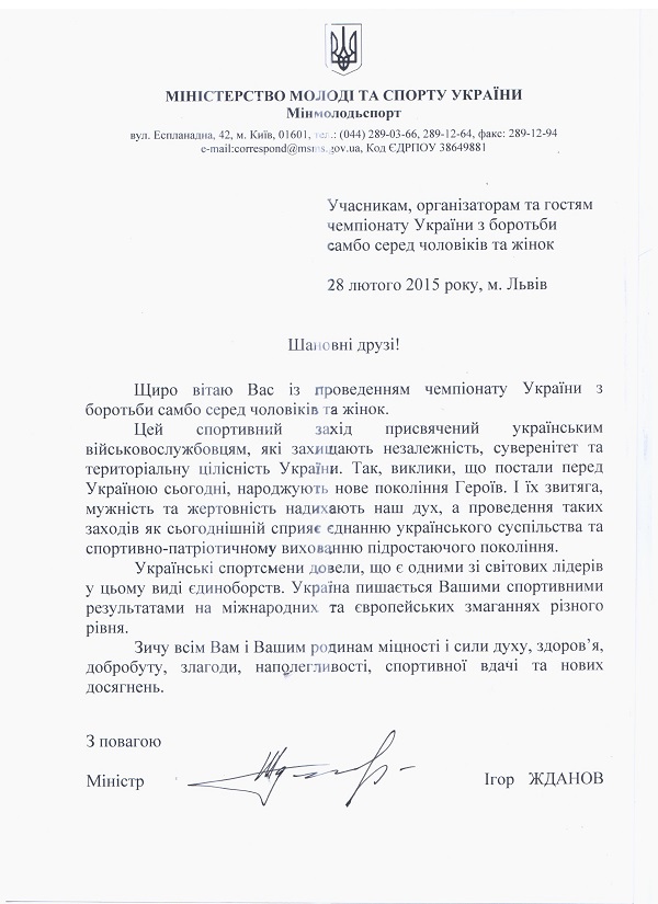 - Прийміть вітання від міністра молоді і спорту України Ігоря Жданова, - взяла слово його заступниця, олімпійська й світова чемпіонка з біатлону Олена Підгрушна.