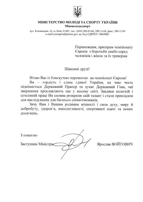 Министерство это еще ладно, не первый раз. Жаль что президент федерации никак не поучаствовал в этой победе. Люди как ездили за свой счет так и ездят. А мы - президенты - потом гордимся !!! и как это самбо потом "в каждое село" продвигать? Типичный пример чиновника и народного депутата! А мы думали Вы особенный! Нельзя так пане Президент!