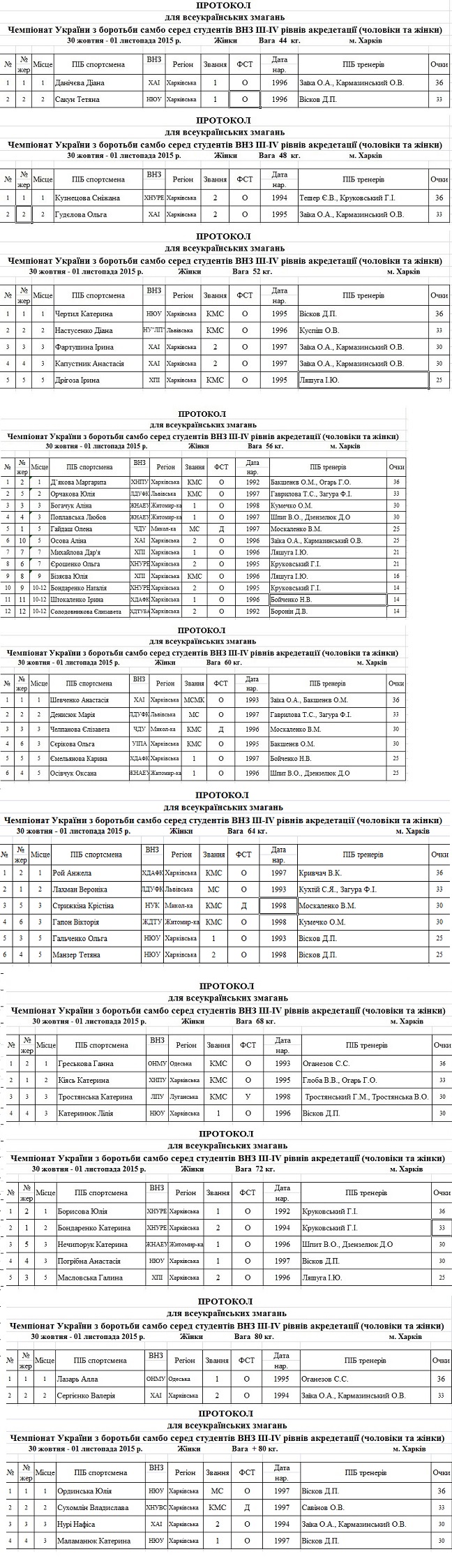 Результати змагань: