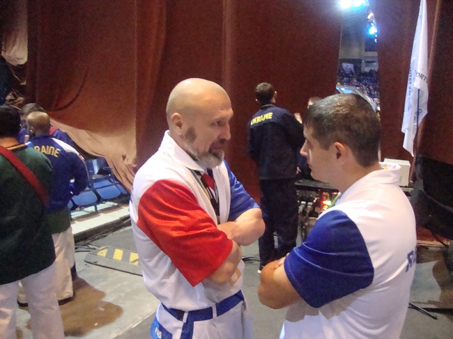 А потім на килим вийшли "бойові" самбісти - Вадим Бурчак, який представляє Рівненщину, і Олексій Заєць із Києва.
