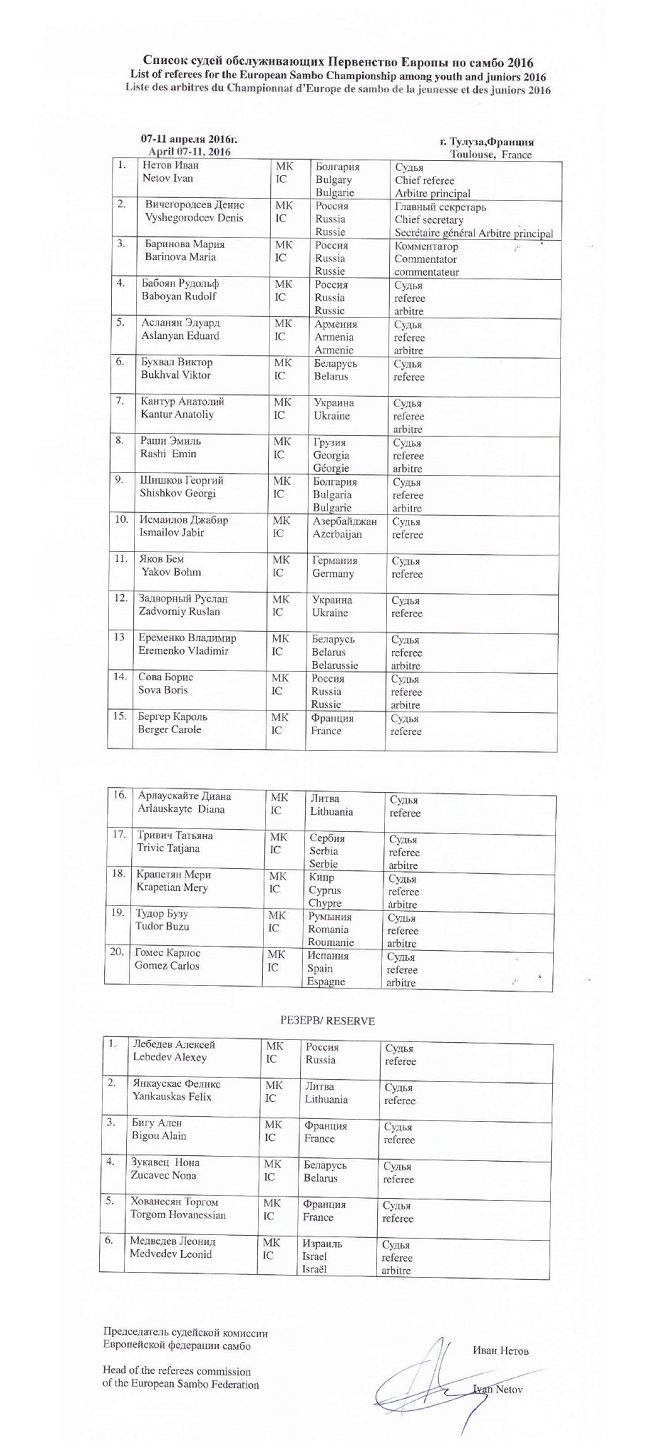 С 7-го по 11-е апреля в Тулузе (Франция) состоится молодежный чемпионат Европы (U-18 и U-20). Континентальная федерация опубликовала список судей, которые будут обслуживать соревнования. Среди них - два украинца: Анатолий Кантур и Руслан Задворный.