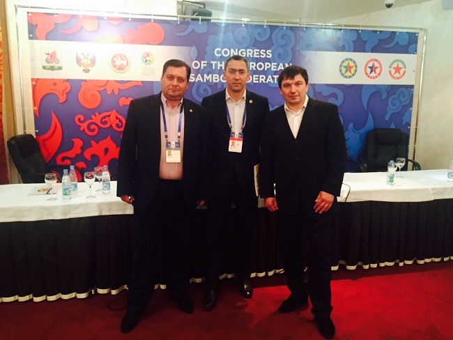 На конгресі Європейської федерації самбо в Казані разом з президентом НФСУ Вадимом РОГАЧОМ і головним тренером Михайлом РУДЕНКОМ.