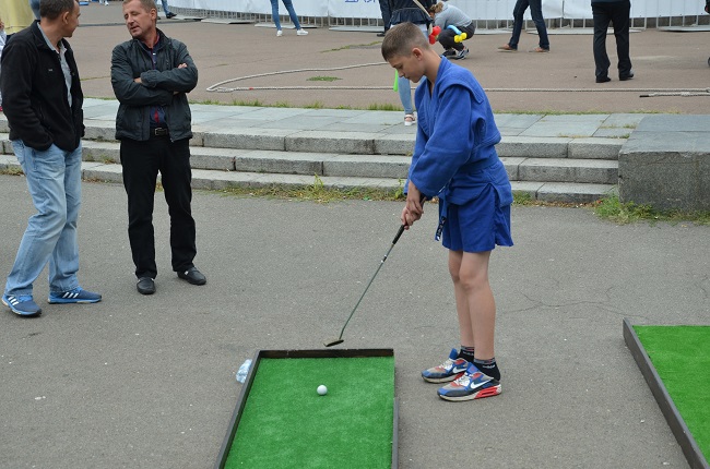 Самбісти спробували себе й в інших ролях, взявши лицарські обладунки, а також ключку - головну "зброю" гольфу.