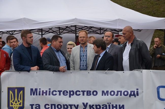 А президент НФСУ Вадим Рогач виступав у ролі гіда для заступника міністра молоді та спорту Миколи Мовчана й інших почесних гостей.