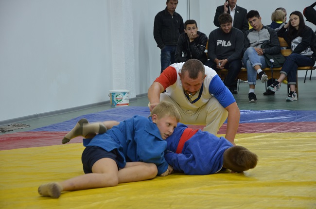 Потім декому довелося "змінювати дислокацію", адже самбісти вміють встигати скрізь і працювати, так би мовити, на різних фронтах. Так, у селі Святопетрівське Києво-Святошинського району Київської області спортивно-патріотичний клуб "Доброволець", будівлю якого тільки-но зведено, приймав ще один комплексний захід.