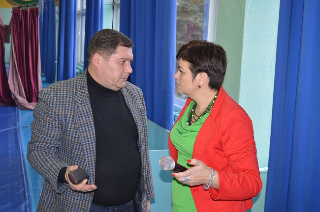 Вадим РОГАЧ обговорює план семінару з науковцем Інституту модернізації змісту освіти Галиною КОЛОМОЄЦЬ.