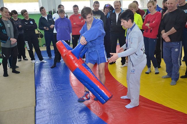 Звичайно ж, учителям фізкультури дали попрацювати й з самбістами "із плоті й крові". Щоб вони відчули, як правильно діяти в різних фазах прийомів.