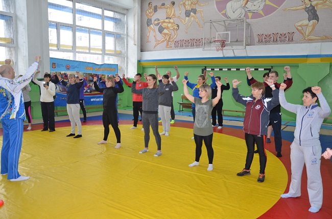Звичайно, перед практичною частиною був невеличкий інструктаж, його провів президент Національної федерації самбо України Вадим РОГАЧ, очільник авторського колективу програми із запровадження самбо в школи. До речі, вже понад 50 закладів освіти реалізують цей проект. Своєї черги на отримання необхідного обладнання очікують ще півтори сотні шкіл.